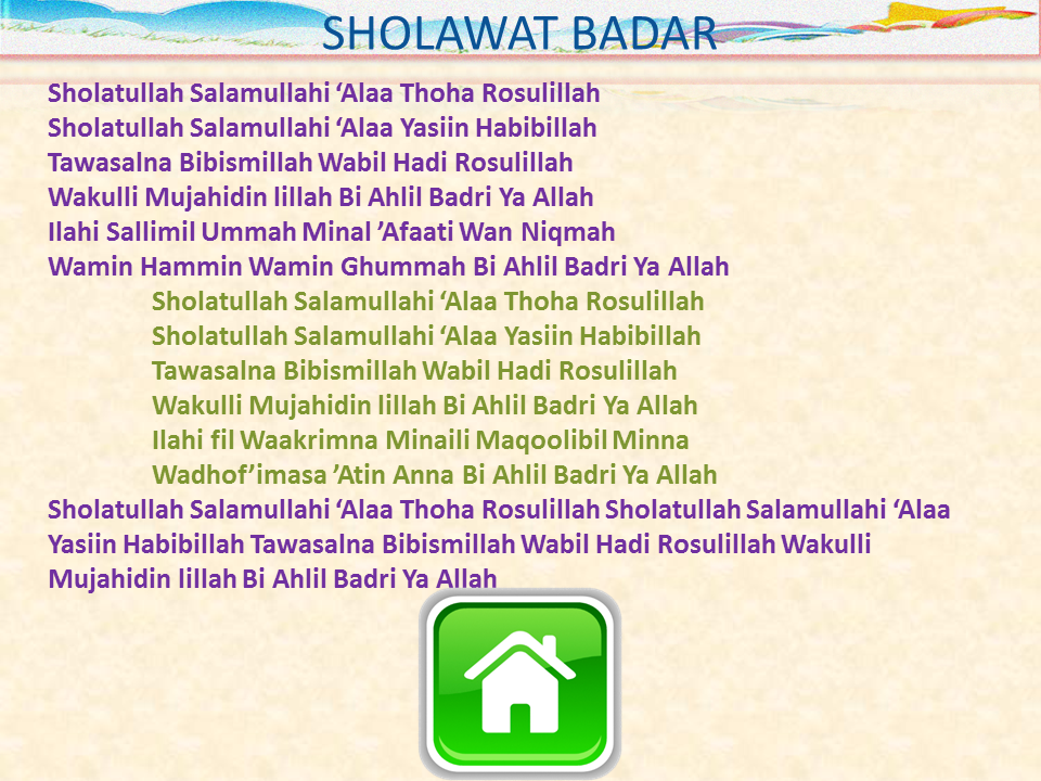 Kh m ali mashur merupakan salah satu keturunan ulama besar di tanah air. Lirik sholawat maula ya sholli wasallim daiman abadan dan. Karena sholawat badar ini memang merupakan salah satu sholawat nabi yang. Lirik sholawat allah allah aghisna ya rasulullah dan sholawat badar baca juga: Lirik sholawat jawa berkat shalawat maksiat minggat;